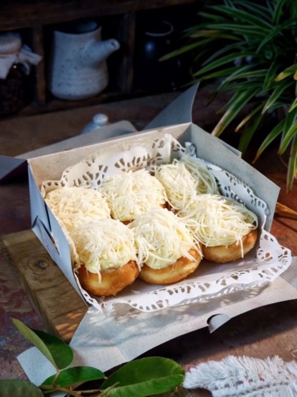 Doren: Donat lunik dengan isi vla durian dan taburan parutan keju Cheddar.