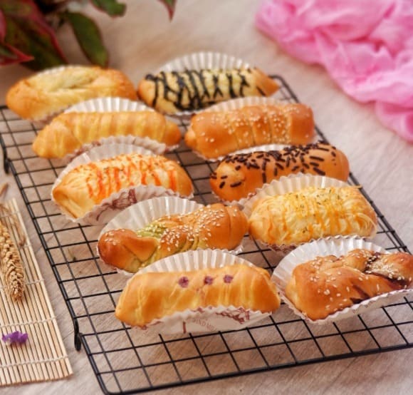 Varian isi : Pisang panggang, selai blueberry, selai keju, selai coklat, sosis panggang, selai susu